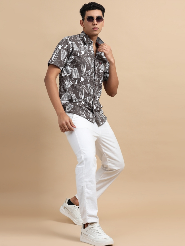 Abstract Printed Cotton Casual Shirt