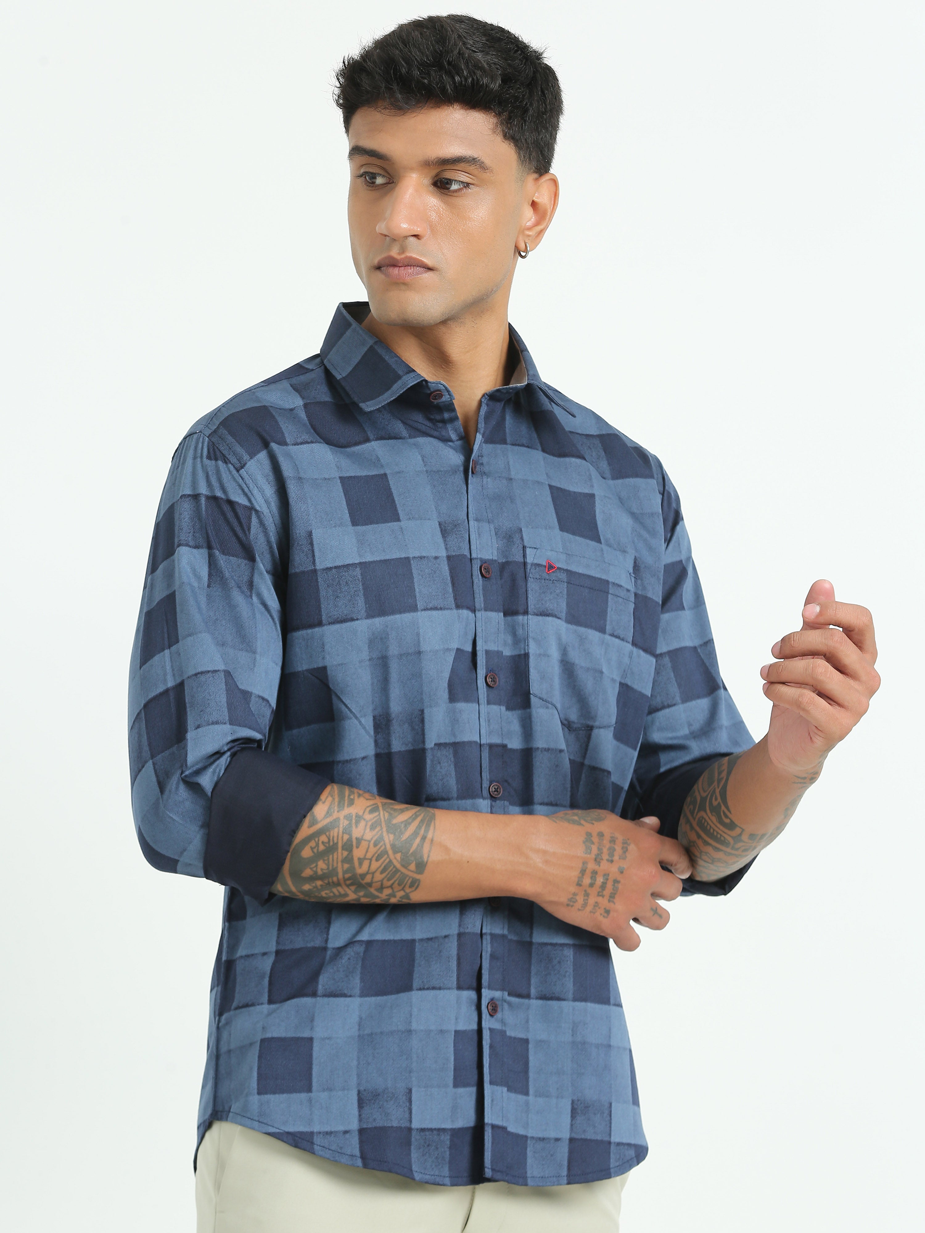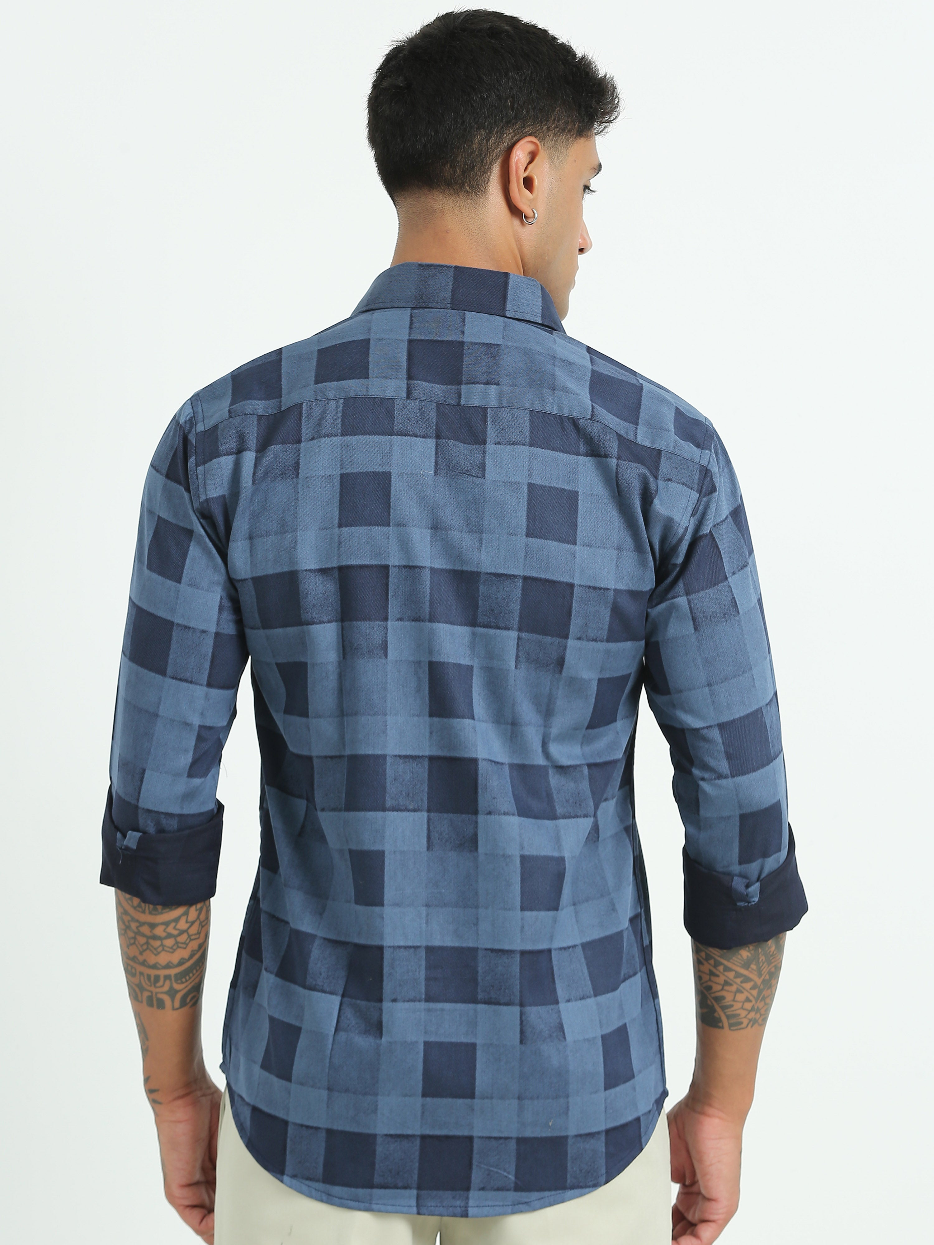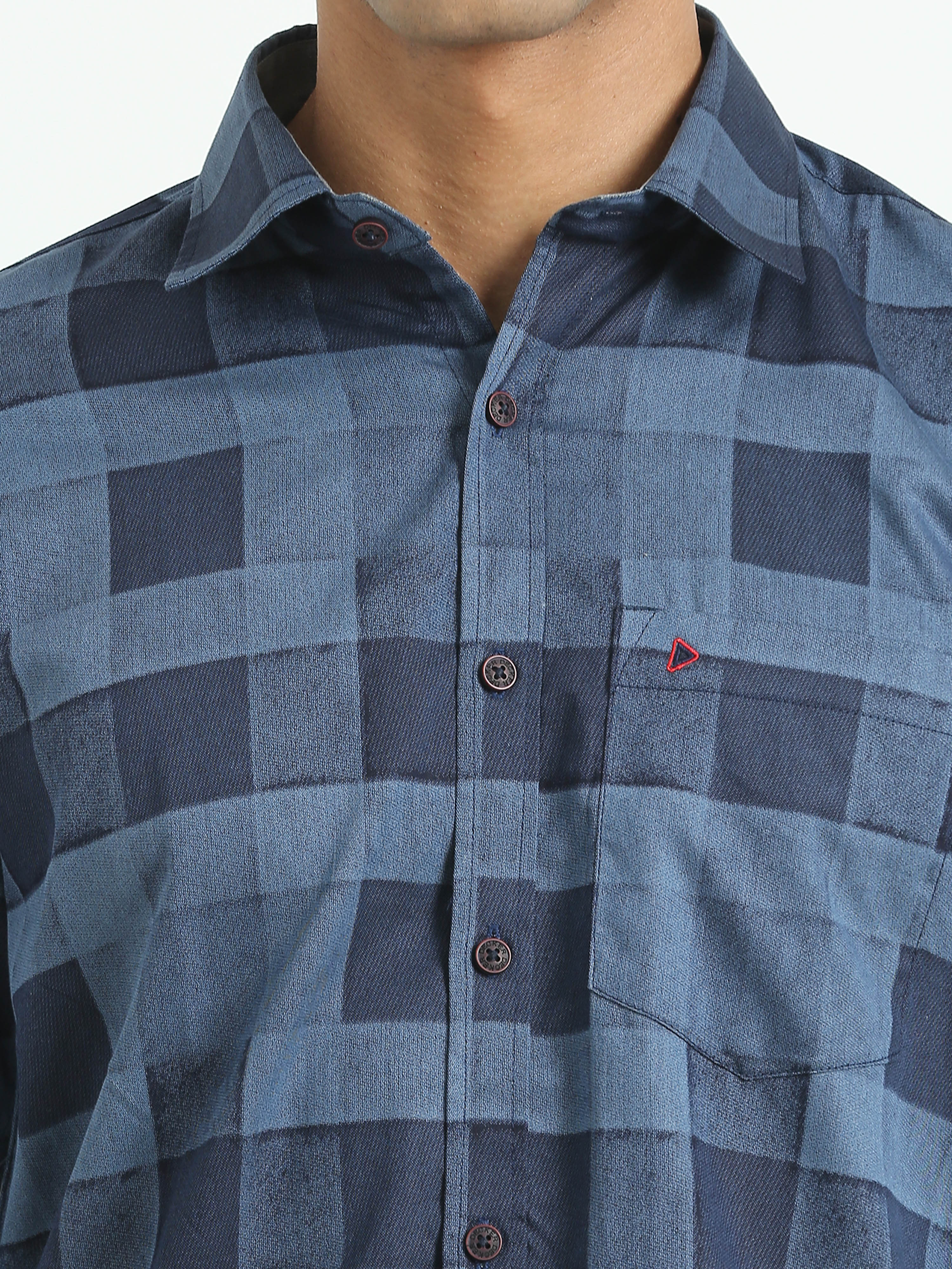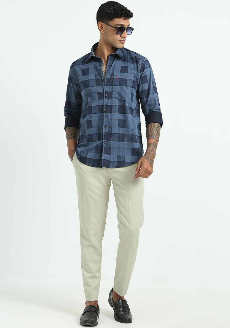Dark Blue Printed Checked Shirts