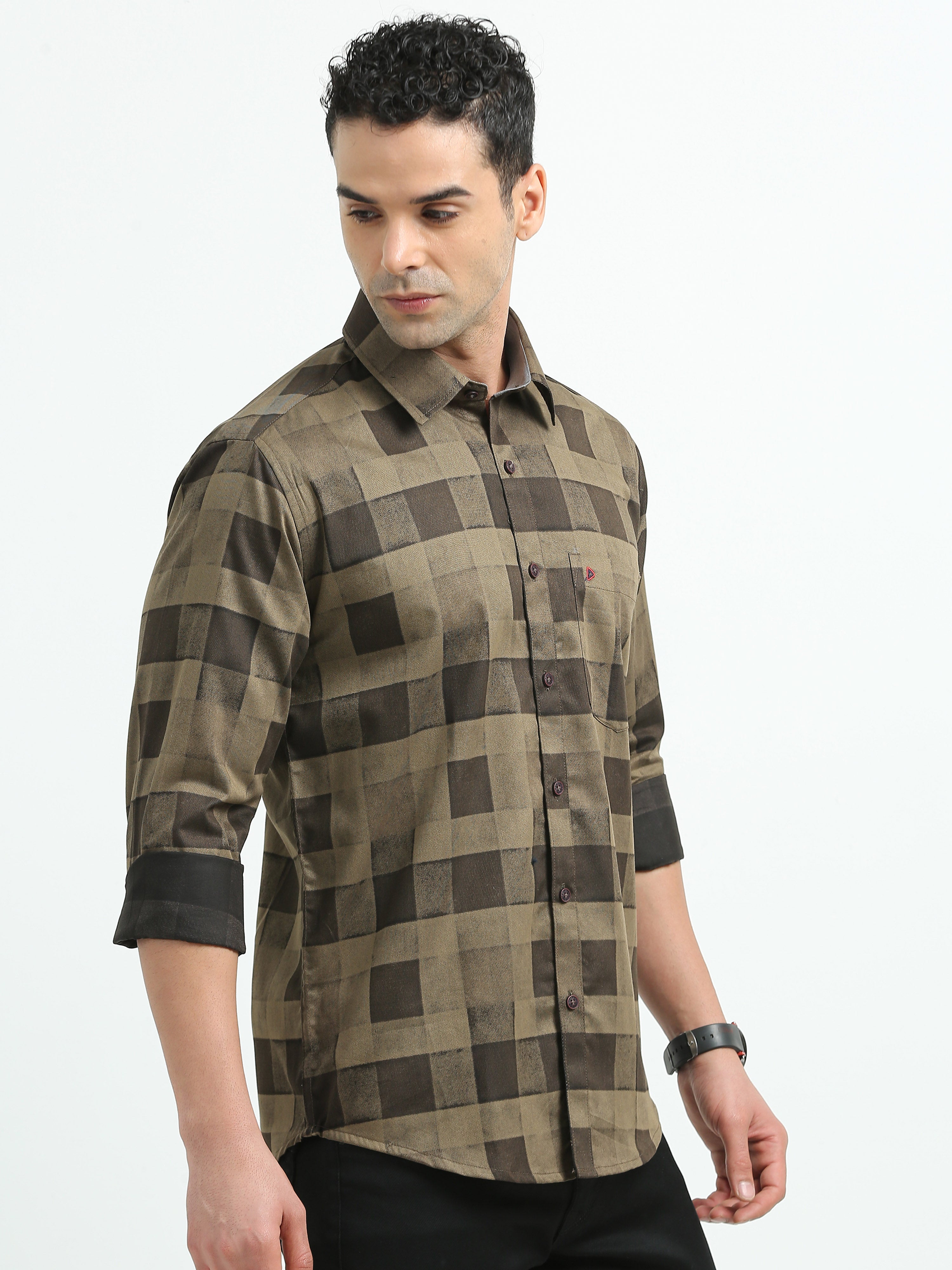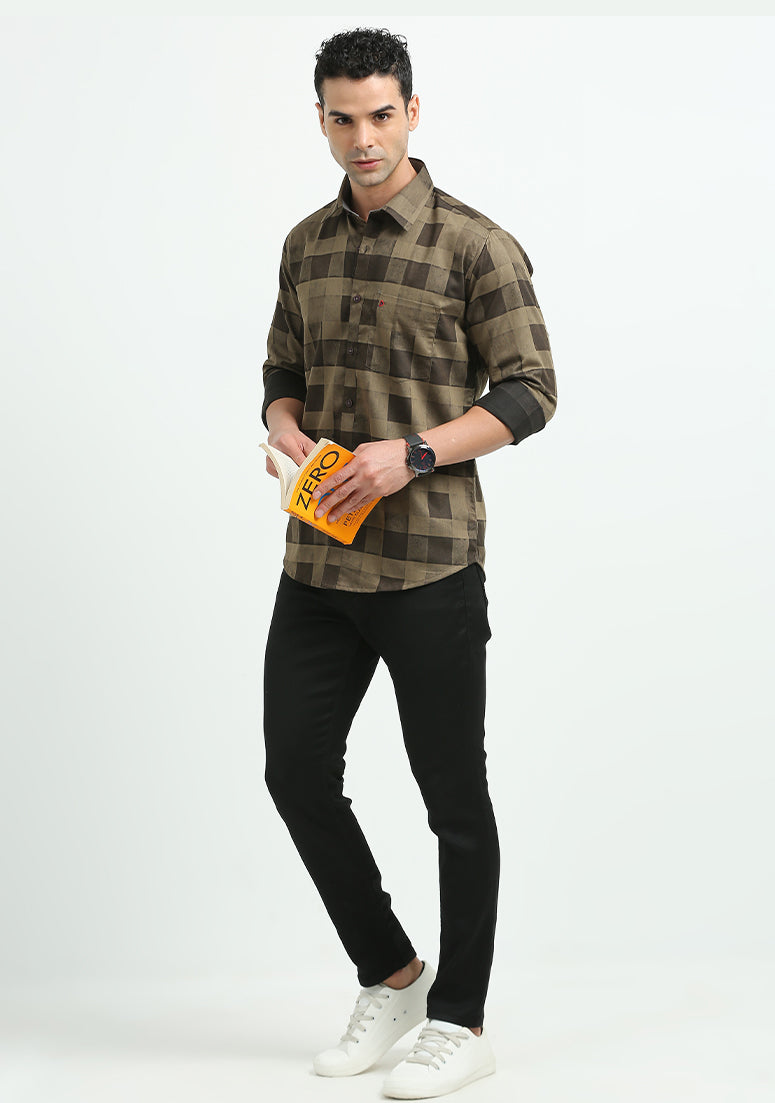Dark Brown Printed Checked Shirts