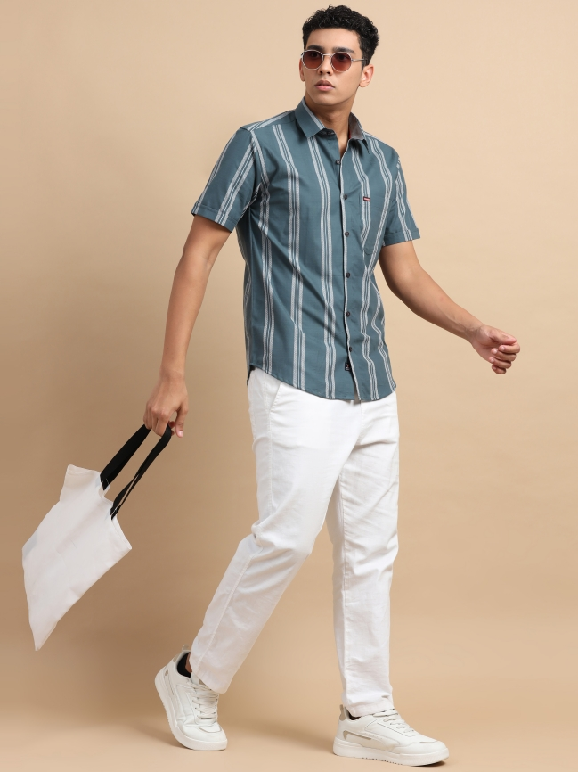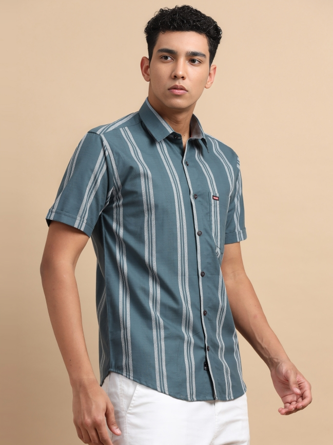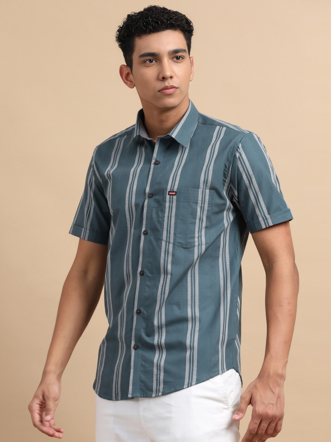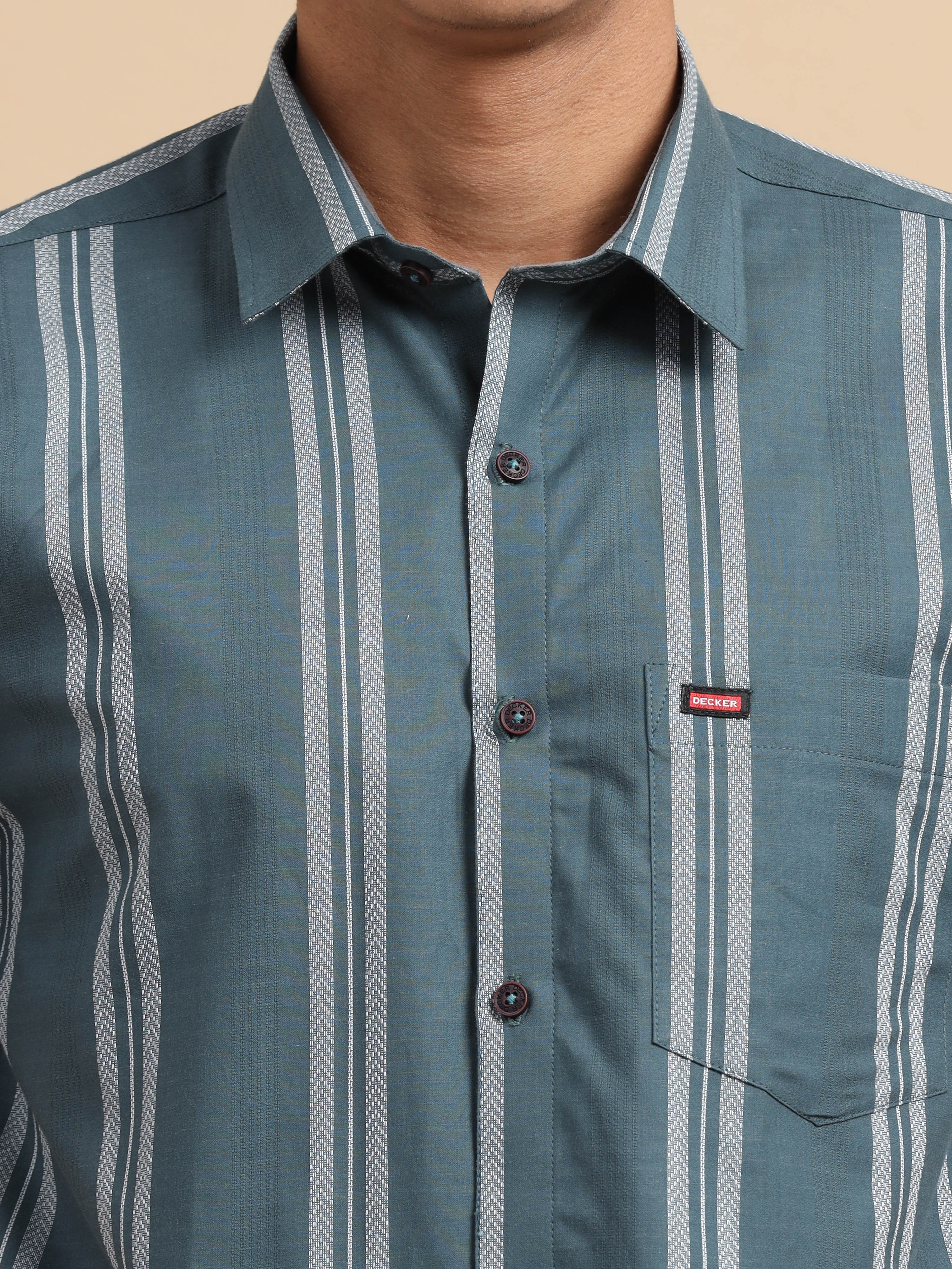 Dark Green Grey Strips Shirt
