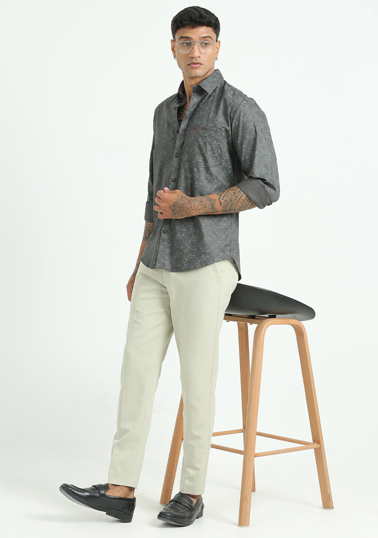 Dark Grey &  Black Abstract Print Shirts