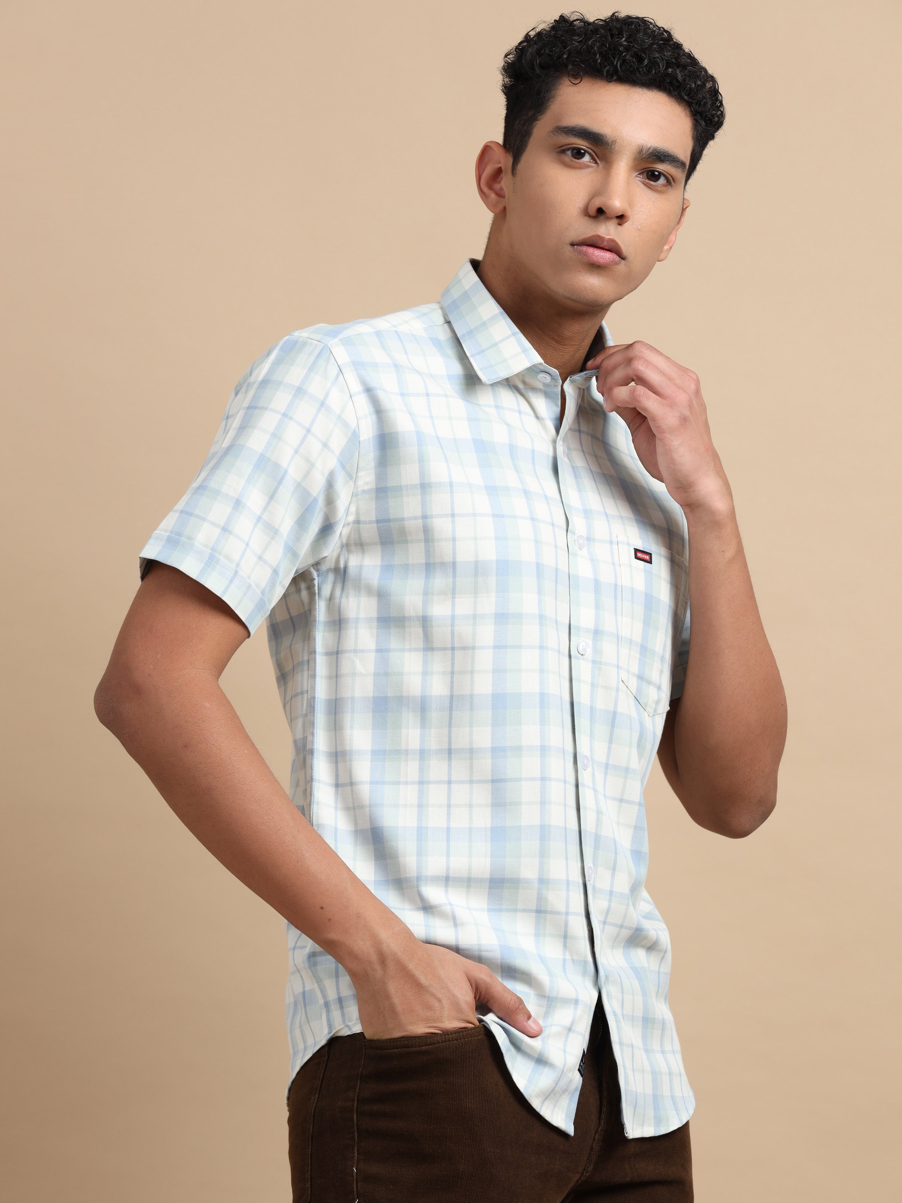 Light Green & Light Gray Check Shirt