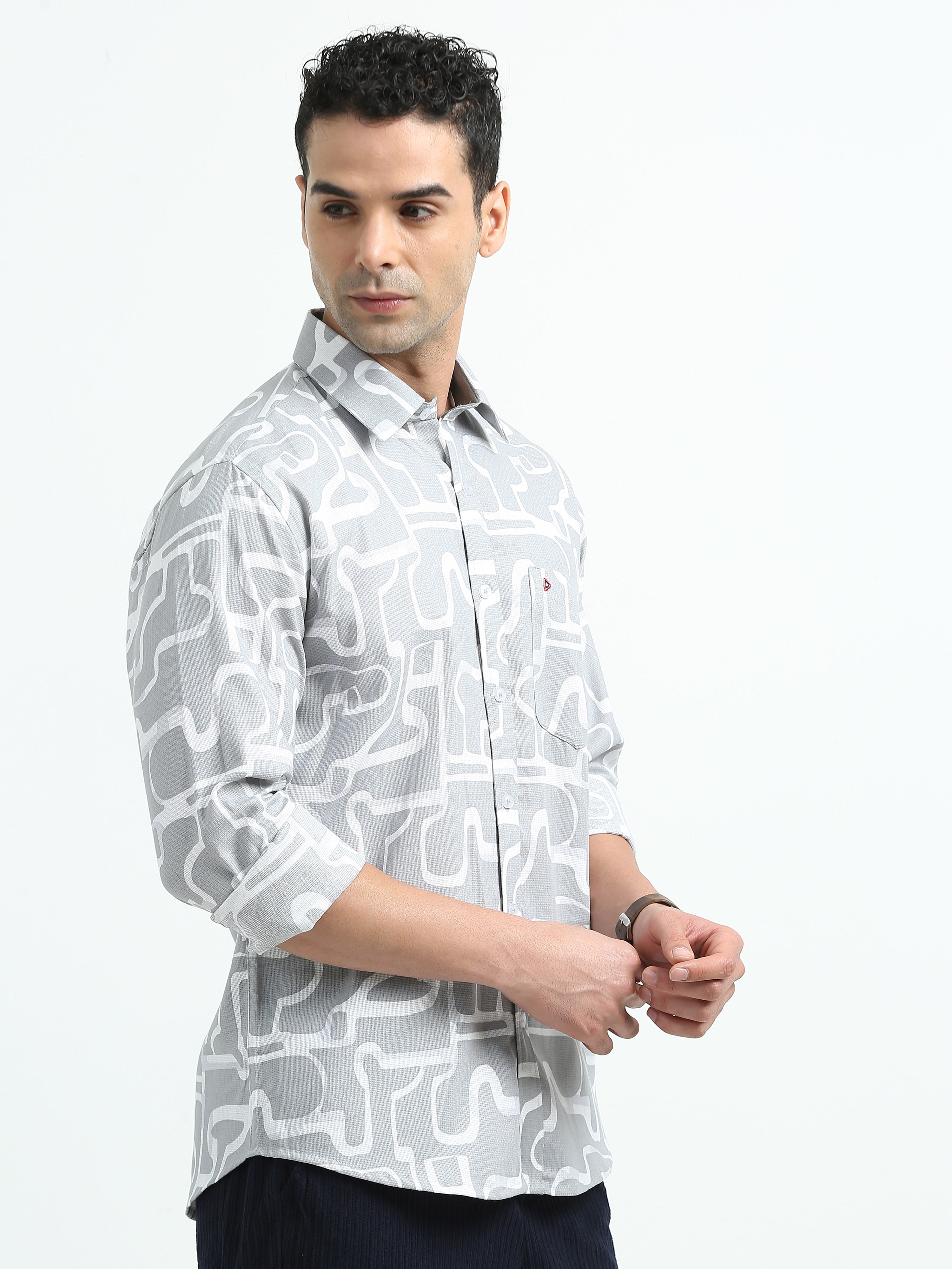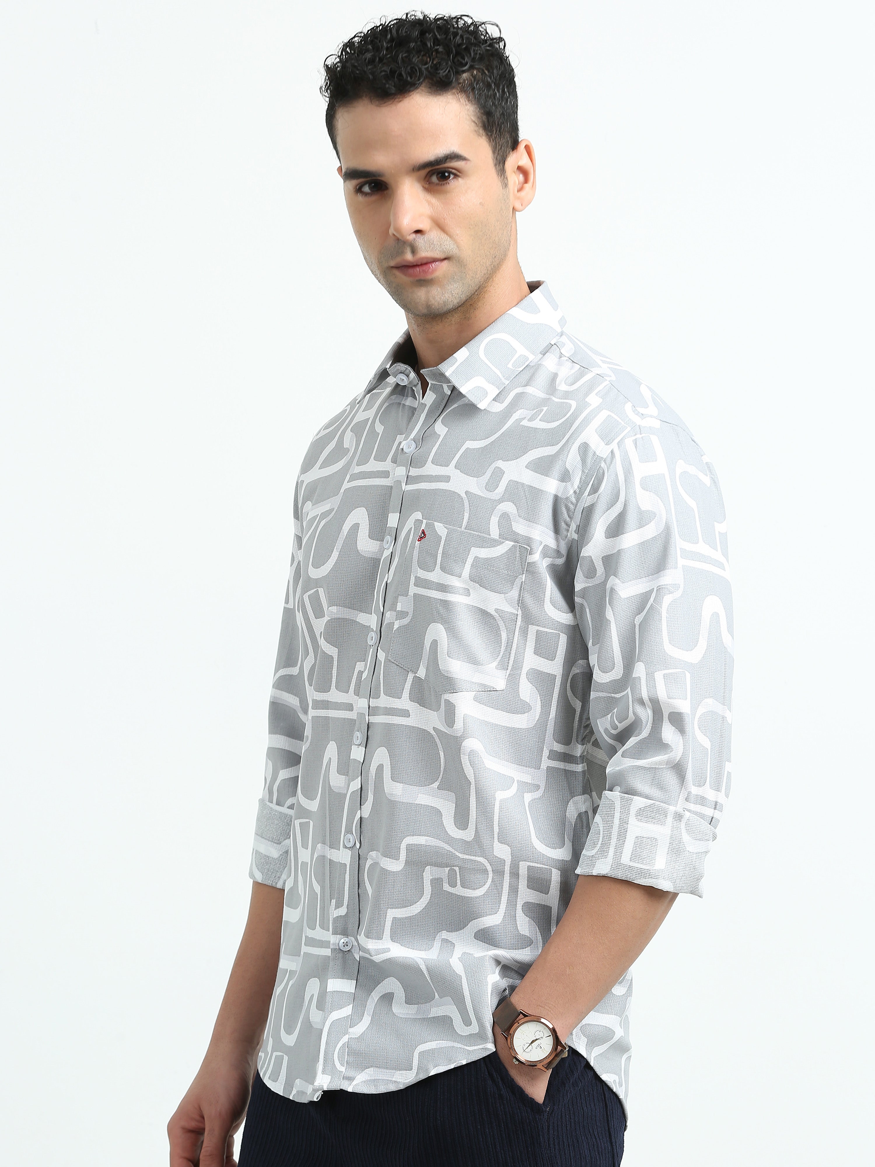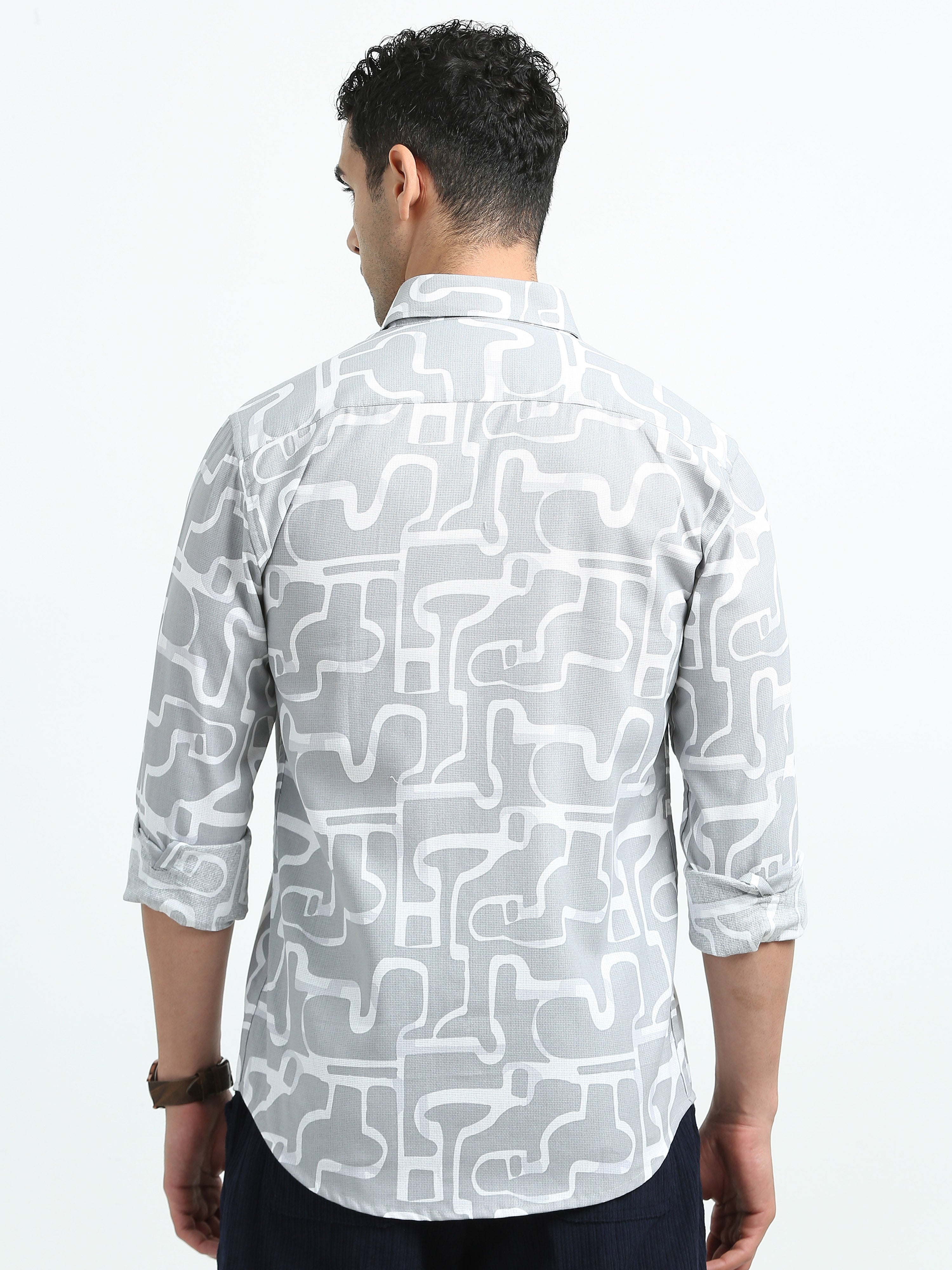 Light Grey Abstract Print Shirts