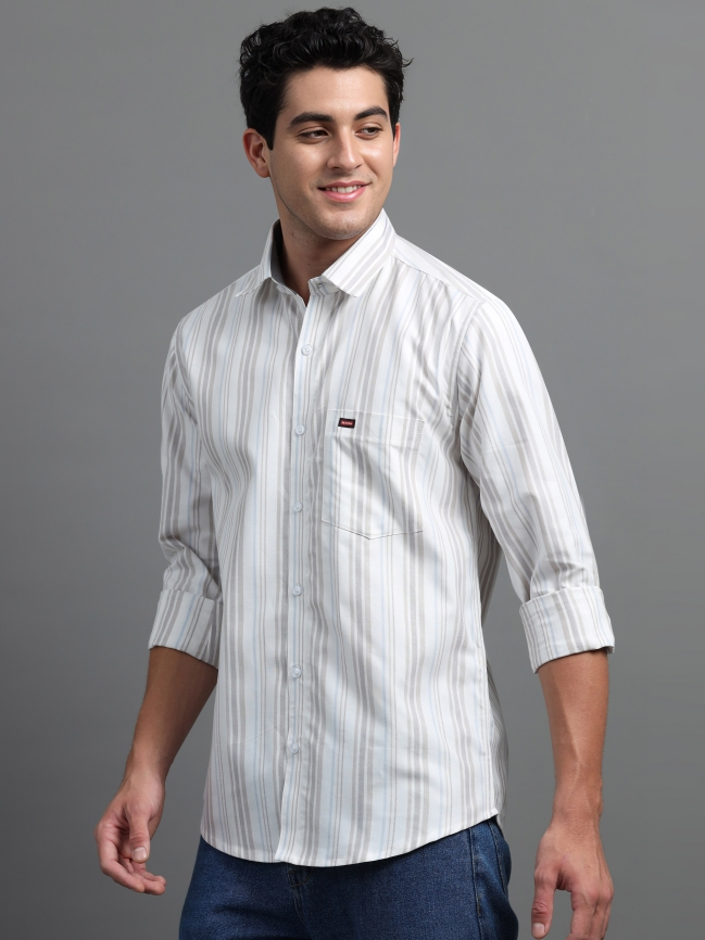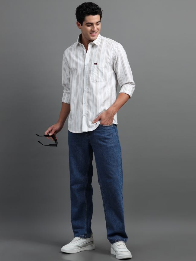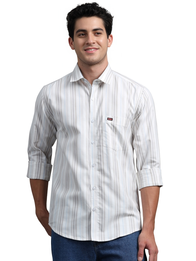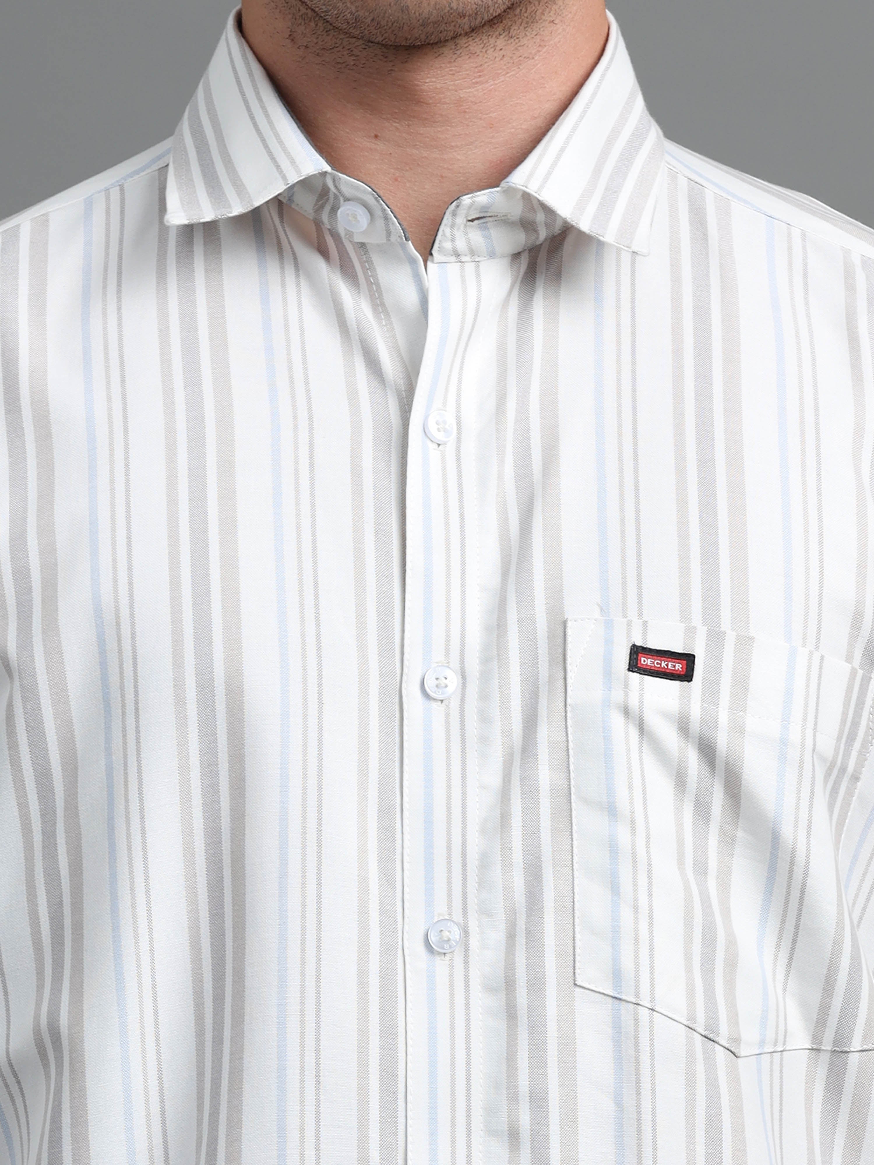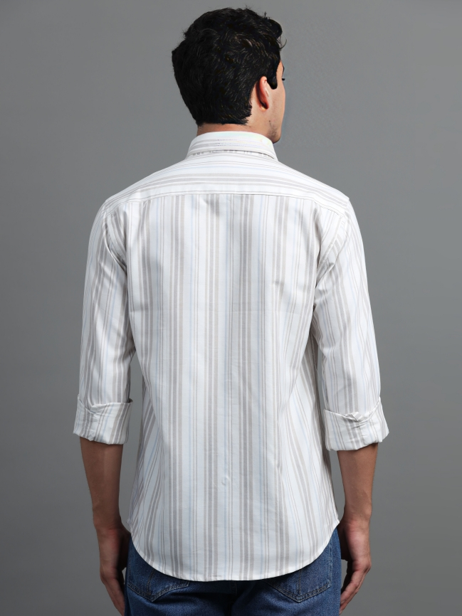 Off White & Light Brown Strips Shirt