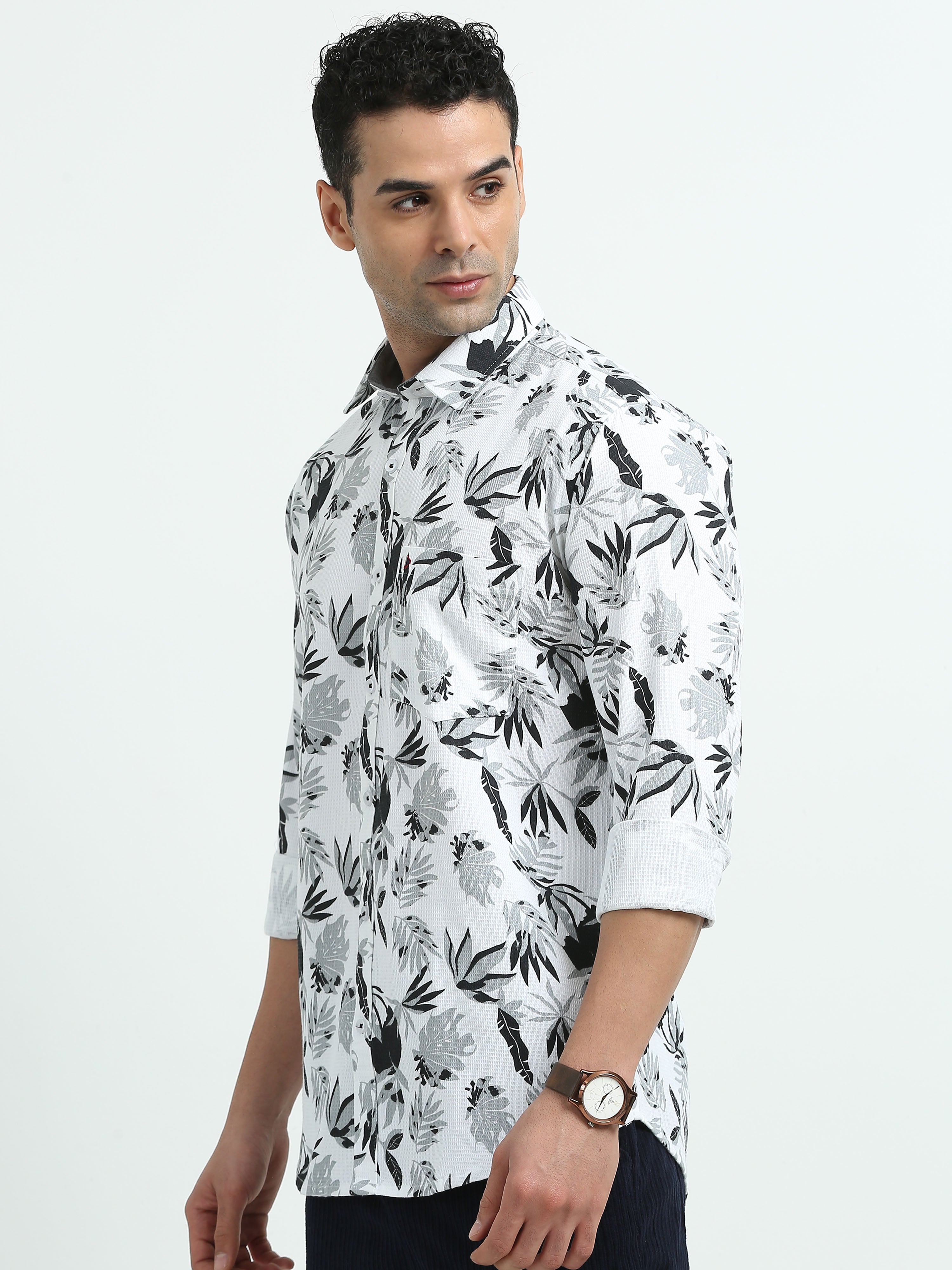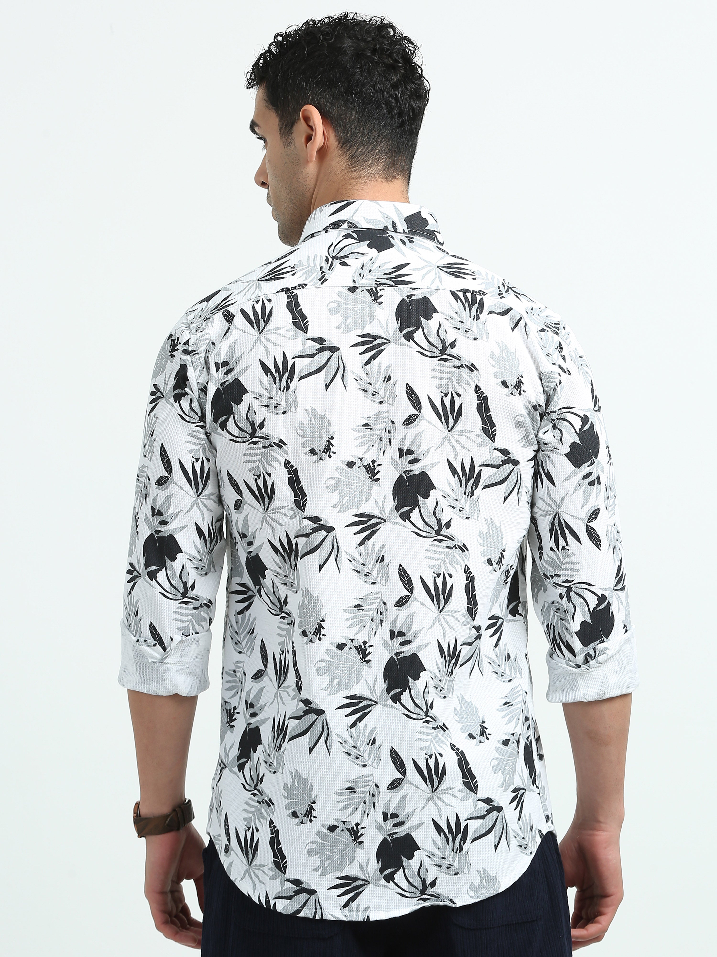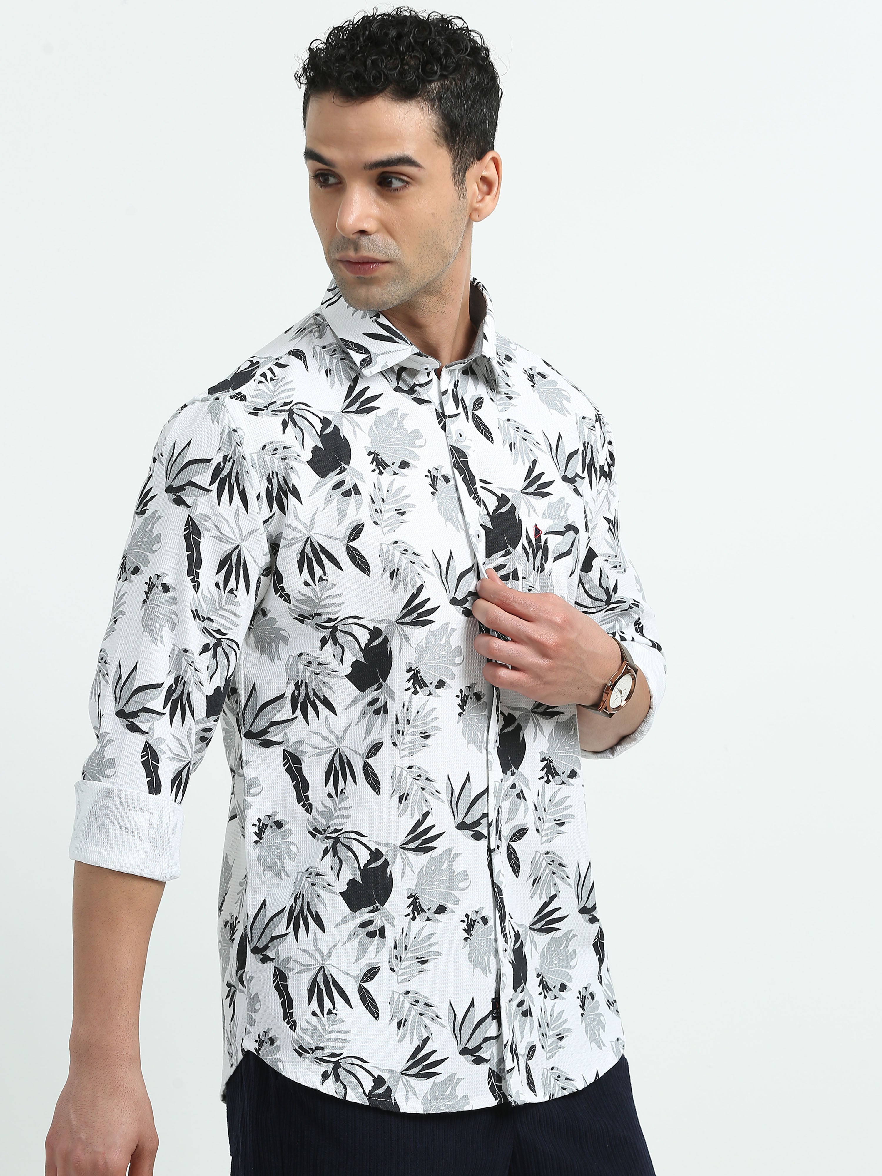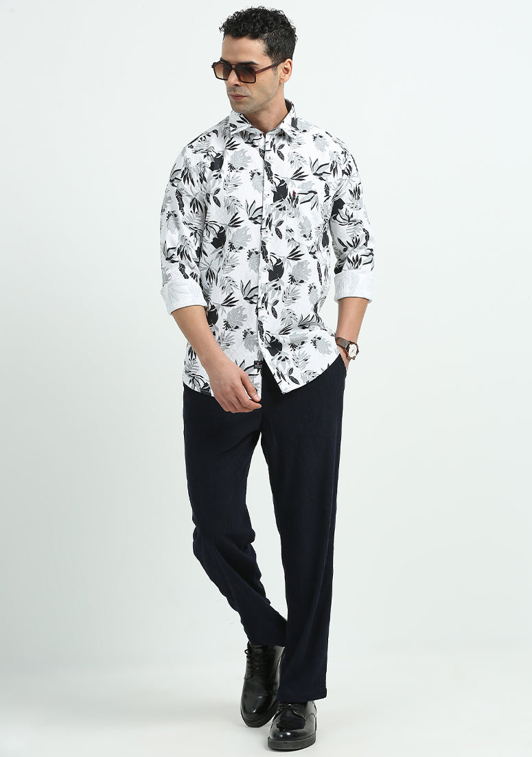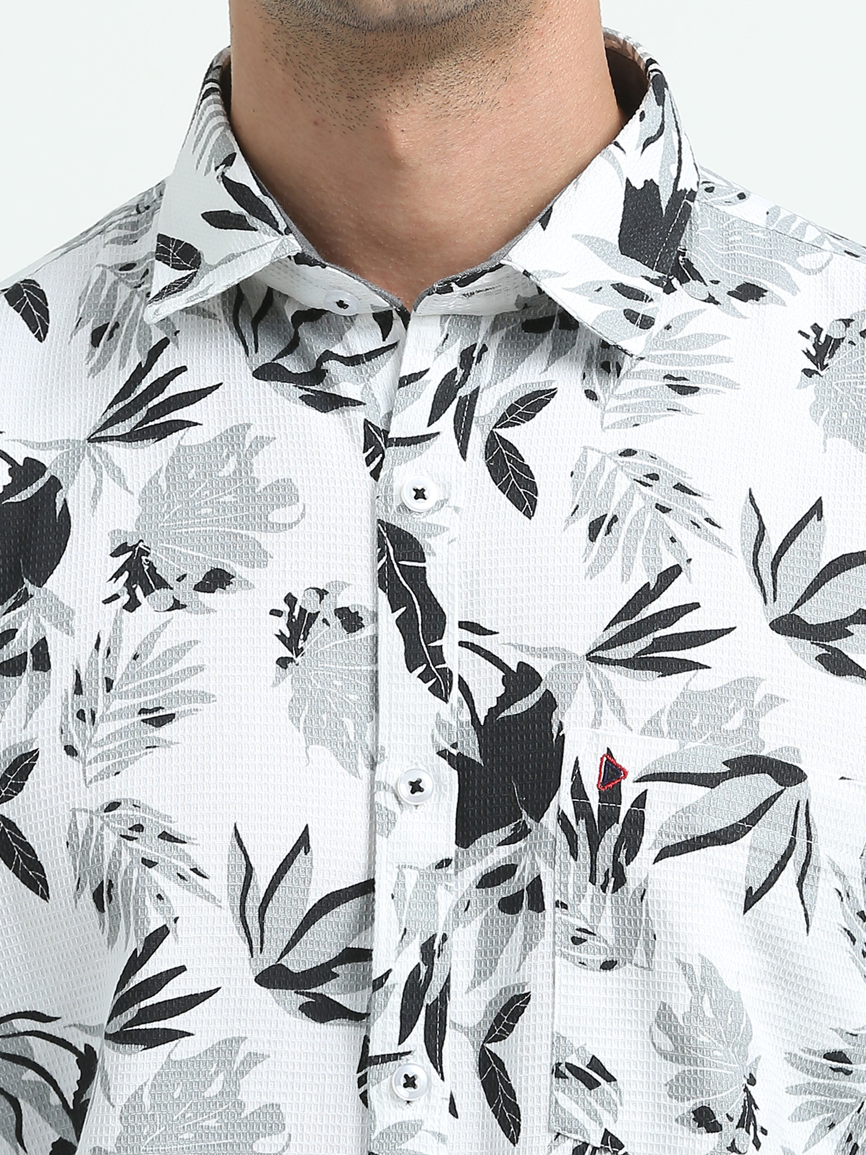 White Grey Leaf Print Shirts
